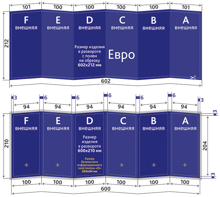 Размер безопасного информационного поля: 204x92 мм / 204x93 мм / 204x94 мм (где будет текст, логотип);